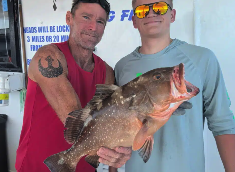 Red grouper are still mixed in near shore, though keeper-sized fish are more common the deeper you go. Most of what we’re seeing inside 100ft are the “teenagers,” but every trip or two brings a solid one to the box for those putting in the time.